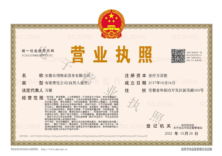 安徽眾得物業(yè)服務(wù)有限公司成立于2017年08月,注冊(cè)資金一千萬(wàn)元。自公司成立以來(lái),始終遵循“業(yè)主至上、服務(wù)第一”的企業(yè)宗旨,發(fā)揚(yáng)“團(tuán)結(jié)、務(wù)實(shí)、開(kāi)拓、創(chuàng)新”的企業(yè)精神,樹(shù)立了“以人為本、人性化管理,以客為尊、讓客戶(hù)滿(mǎn)意”的經(jīng)營(yíng)理念,創(chuàng)立了具有眾得特色的物業(yè)服務(wù)模式。 基礎(chǔ)服務(wù) 保潔服務(wù):小區(qū)保潔、單位保潔、商場(chǎng)保潔、醫(yī)院保潔...... 保安服務(wù):小區(qū)保安、單位保安、商場(chǎng)保安、醫(yī)院保安...... ...